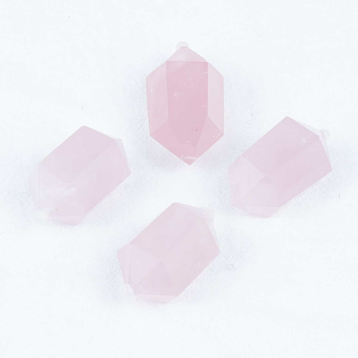 4,5 cm großer Rosenquarz, kleine Doppelspitze, in großen Mengen
