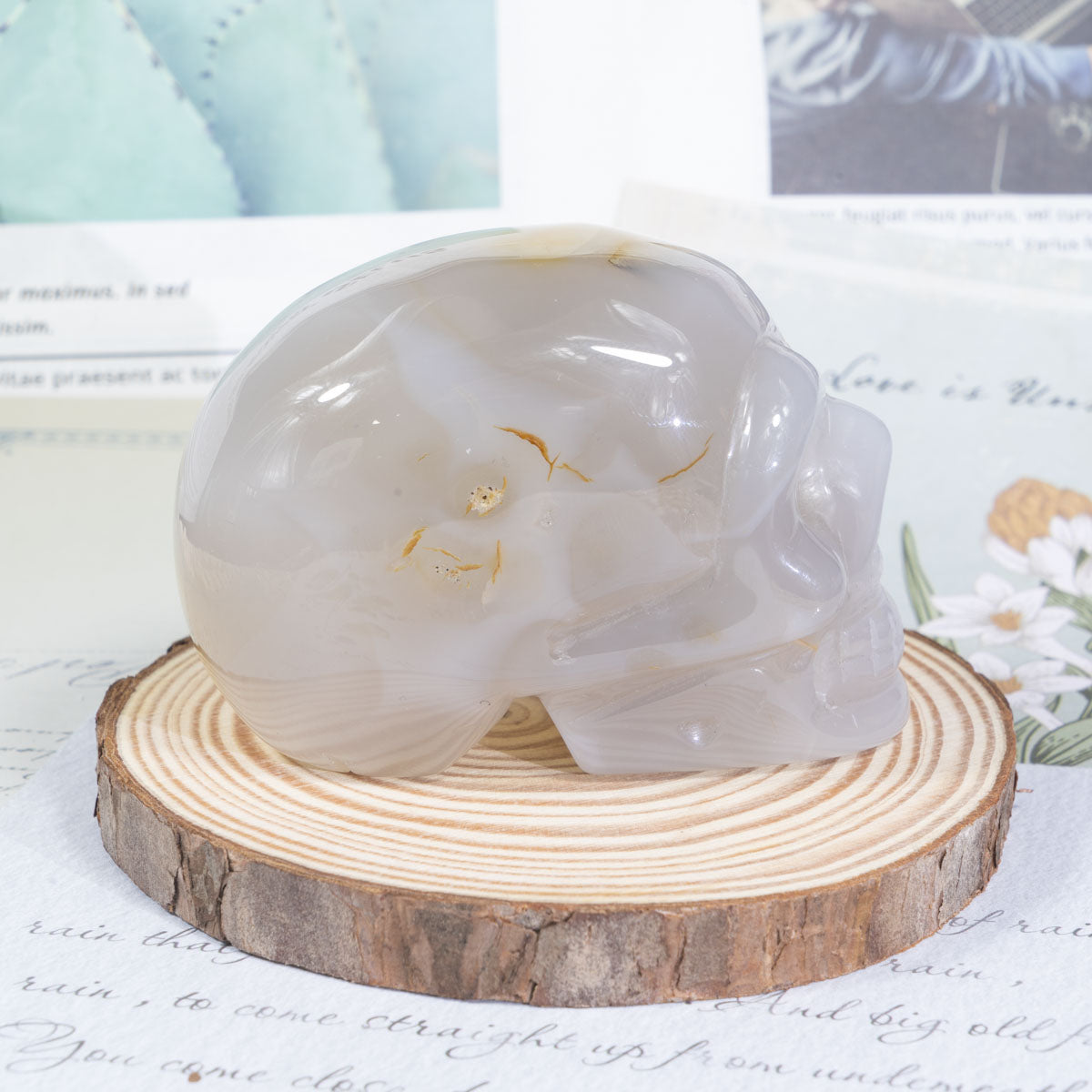 Calavera de ágata gris de 3 pulgadas a granel